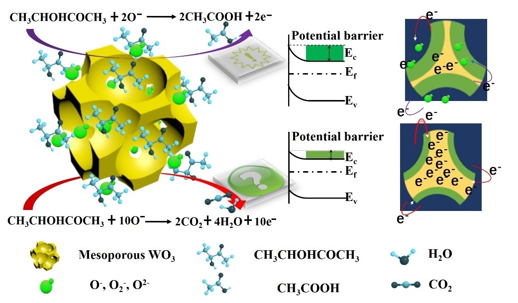 鉴于此,该研究团队采用一种创新的合成方法获得具有高结晶度有序的介孔WO3材料,而这种具有特殊结构的介孔WO3敏感材料对食源性致病菌产生的特有MVOCs具有快速的响应(< 10 s)、高的灵敏度(Rair / Rgas> 50)和很好的选择性。结果也表明这一研究对于理解气体敏感机理起到了重要作用,为优化气体传感器的灵敏度和选择性提供了新思路。该研究成果被能源材料化学协同创新中心作为研究亮点报道,同时被知名学术网站“纳米人”、“Materials Views China”所报道。