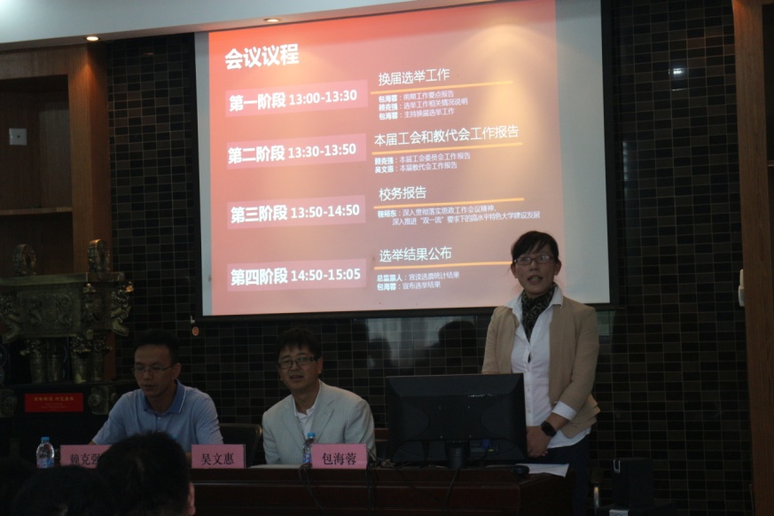10月23日公司党委书记陈慧牵头召开院第八届双代会代表第一次全体会议,选举产生校级代表13名和院双代会工作委员会。