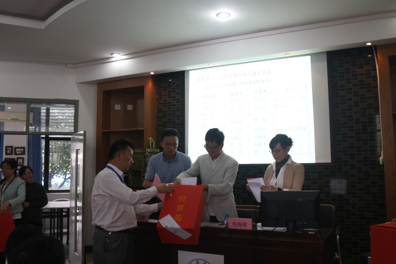 会上,分别审议通过了《304am永利集团工会委员会换届选举办法》、《304am永利集团“双代会”代表选举办法》、选举办法和总监票人、监票人名单。在总监票人包建强同志的主持下,采用等额选举办法、无记名投票方式产生公司第八届工会主席,采用差额选举办法、无记名投票方式,选举产生了公司第八届工会委员会委员6名,院“双代会”代表31名。