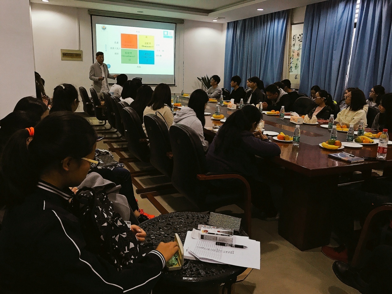 会议伊始,张越老师即抛出几个问题给员工:你是谁、上大学为了什么、你的目标是什么等看似简单却又发人深省的问题。当张老师把自己比喻成一个可以帮助他人实现任何愿望的精灵时,员工却很难说出自己最确切的愿望,张老师由此引入性格色彩的概念教授员工如何进行有效的自我探索。接着,张老师凭借15年来科研院所、国有企业等体制内单位人力资源管理工作的经历,带领员工深入的了解职场,悉心教授员工确定职业方向的三原则:不能没有方向、不能同时有很多方向 和不能总改方向,同时演示如何应用SMART原则来设定自己的职场目标。最后,张老师强调一份好工作只为一个有准备的人而来,员工们要从当下培养自己的名片意识和匠人精神,用勤朴忠实的校训来勉励自己。会议接近尾声之时,包斌老师也热情的为员工讲授多年来的工作心得和体会,鼓励员工多和老师、前辈们取经,习得一身本领,开创一片天地。