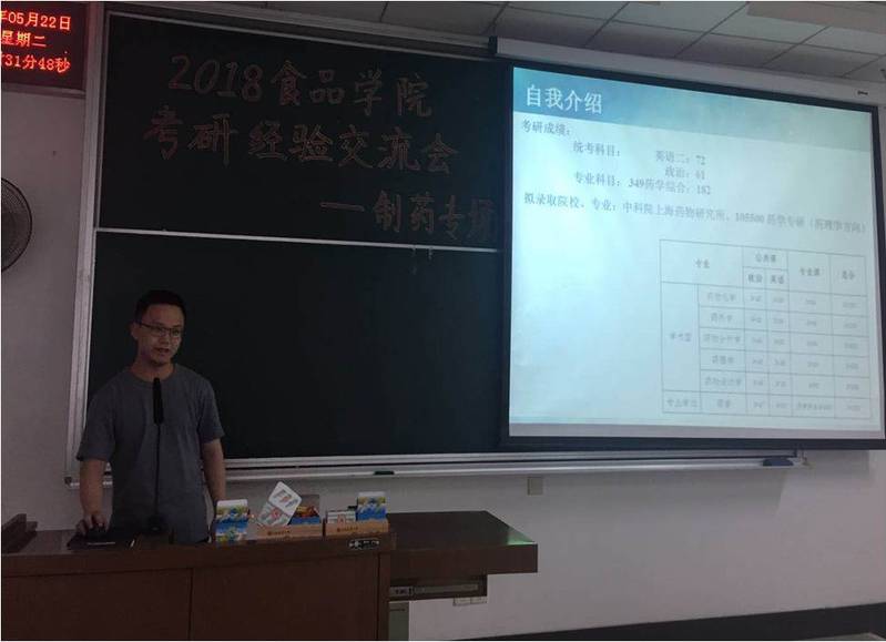 最后,谢永乐也和大家分享了他的经验。在此次考研中,谢永乐以总成绩349的高分被中科院上海药物研究所拟录取,这也是他非常向往的公司,他也表示,选择考研这条路是他人生中非常正确的一个选择,也使他感到非常的骄傲。谈到确定考研目标时,谢永乐向大家分享了“考研名师”张雪峰史上最强爆笑考研讲座的视频,从中,他想告诉各位同学选择自己的考研公司和专业时要从自己的发展前景,公司的录取比例,专业的涵盖面和自身的能力水平这四个方面综合考虑。对于考研复习的建议,谢永乐认为应当分门别类,针对不同科目他也做出了不同的建议,并极力向大家推荐了肖秀荣教授的政治考研公众号和何凯文考研英语的公众号。在时间安排上,谢永乐也整理出了自己的复习路线计划供大家参考。最后,对于自己的考研经验和教训,谢永乐建议同学复习考研最好几个人一起,这样更有效率,在复习期间不要被外界干扰,要坚持到底,不管最终结果如何,只要在这段时间内尽自己最大努力,都会是自己值得怀念的一段时光。