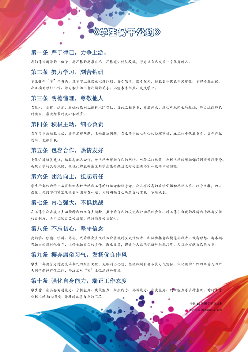姜璐同学发言结束后,在团委组织部干事王皓阳同学的带领下我们还宣读了团学骨干共同拟定的《员工骨干纪律公约》及《寝室文明公约》。2018年十月,北京大学员工会、清华大学研究生会等高校员工组织联合发布了《员工会、研究生会行为自律公约》的倡议,公司积极响应,只为304am永利集团能够更好的发展。