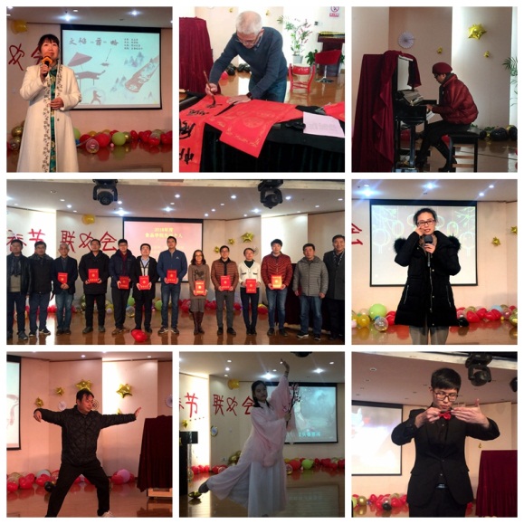 随后,独具匠心的巧思策划和异彩纷呈的节目内容赢得了教师们的阵阵掌声和笑声。本场联欢会节目形式多样,既有学工办老师精心准备、笑点满满的生活小品,又有教职工们倾情演绎的致敬改革开放四十周年特别节目年代金曲串烧;既有变化莫测,真假难辨的现代魔术秀,又有传承中国古典文化的古琴演奏;既有如泉水叮咚、沁人心脾的钢琴演奏,又有以柔克刚、仙风道骨的太极拳表演。此外,“飞花令”等游戏抽奖类节目将联欢会的气氛推向高潮,与会教职工在“讨个好彩头”的欢呼和掌声中度过了一个难忘的新年联欢会。值得一提的是资深教授陈舜胜老师现场献艺书写春联,墨宝一联难求,现场老师纷纷表示明年还要“续邀”老教授。