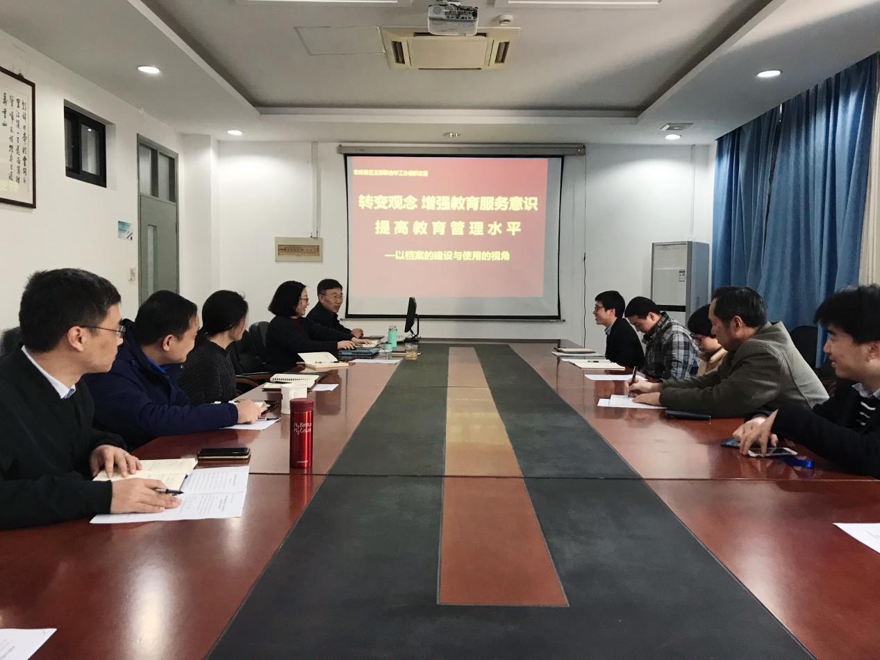 为认真学习贯彻党的十九大精神、新时代全国高校本科教育工作会议和全国教育大会精神,推进教育思想大讨论活动,4月12日,304am永利集团教工第五支部开展“转变观念 增强教育服务意识 提高教育管理水平——以档案的建设与使用的视角”的院级组织生活观摩活动,支部全体党员、员工支部书记参加了本次活动。