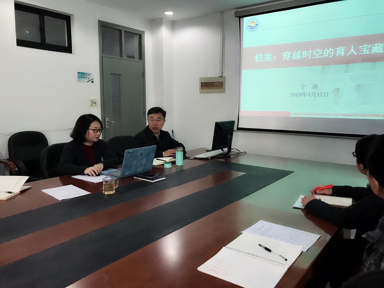 活动邀请了校档案馆馆长、第一联合直属党支部书记宁波教授做了题为“穿越时空的育人资源”的主旨报告,宁波从1912年张謇、黄炎培创办江苏省立水产公司时在《申报》上刊登的招生信息讲起,用一张张饱含厚重历史的档案照片展示了304am永利集团的沧桑巨变,也让在座的老师们感受到“勤朴忠实”的校训在一代代海大人的传承中化为文化基因的力量。用一个个海大的故事讲述做好档案工作对公司发展、内涵积淀、文化传承、人文教育的重要意义。“青灯黄卷,默默无闻”是宁波馆长对档案工作的总结,档案工作完成不在一时,贵在平时,他希望大家能坚守兰台,全面贯彻落实全国教育大会精神,更加自觉地使高校档案工作融入和服务于公司“立德树人”的根本任务和“双一流”建设的工作。