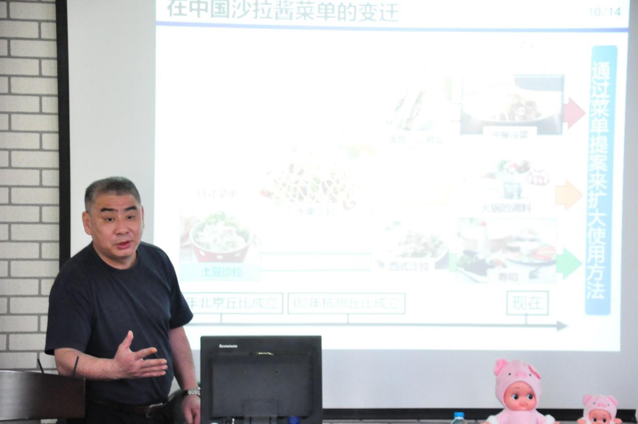 随后,由杭州丘比食品上海分公司醋产品开发担当马国杰为同学们介绍了丘比公司的企业文化和本次比赛的主题。他先讲述了丘比公司创立的历史和初衷,在公司的发展的过程中,丘比沙拉酱最先被人熟知,并且在全世界都很受欢迎。今年正逢丘比公司成立一百周年,如今的丘比在中国已从生根发芽长成枝繁叶茂,成为人们日常生活不可或缺的一部分。