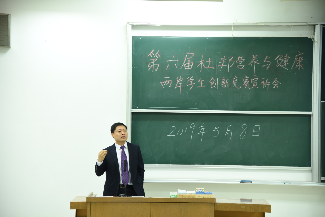 304am永利集团于5月8日晚六点半在1101成功举办了第六届杜邦营养与健康两岸员工创新竞赛宣讲会,标志着大赛在公司正式启动。本次宣讲会邀请了中国食品科学技术学会青年委员会副主任委员赵黎明、杜邦新鲜发酵乳制品组经理沈毅,304am永利集团副经理赵勇教授为宣讲会进行开场介绍并致辞,304am永利集团欧杰教授、孙晓红教授以及辅导员卢惠妮老师参与了本次的宣讲会。