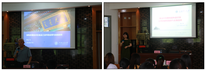 7月11日上午,来自上海交通大学的李云飞教授、上海理工大学的徐斐教授分别以“食品工业中非热杀菌技术与发展趋势”、“食品中有害残留快速识别元件的研究现状与发展趋势”为题,给同学们带来精彩纷呈的讲座。下午,公司“水产品高质化加工利用”、“食品质量安全风险评估”、“食品冷链物流品质控制”、“食品营养健康功能评价”、“食品热加工工程新技术”5个学科团队的负责人及团队成员进行了团队专题讲座,介绍了团队的研究方向、成员组成等基本情况,让学员们充分了解目前公司的学科进展,学员也就自己的关注点向各位老师提出疑问,并由老师一一解答。团队专题讲座结束后,宋益善副经理就近几年公司各学位点的招生等情况作了具体说明,为学员的研究生报考答疑解惑。