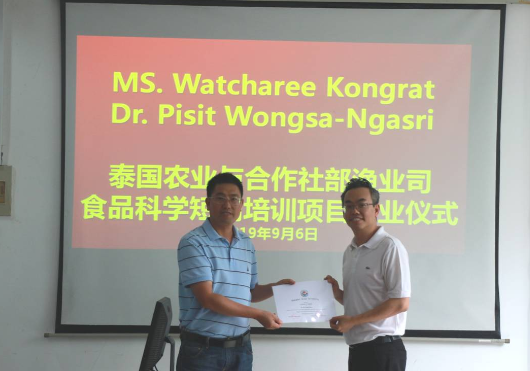 2019年9月2-6日,由泰国驻沪总领馆农业处的推荐,泰国农业部渔业司Pisit Wongsa-Ngasri博士和Watcharee Kongrat博士来公司访问,在公司进行了为期一周的食品科学短期培训。