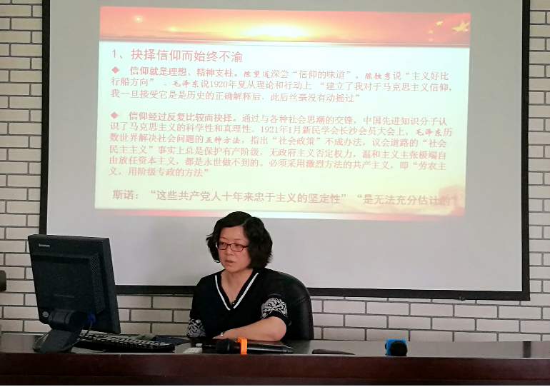 公司党委副书记、经理谢晶以“大力弘扬建党革命精神 不忘初心 牢记使命 永远奋斗”为题进行了主旨发言。她指出初心是我们党在创建时候点亮的理想之火。理想之火一经点燃,就要永不熄灭,要照亮新时代的新征程,激励我们永不懈怠、永不僵化、永不停滞。接着,她从大力弘扬开天辟地、敢为人先的首创精神,大力弘扬坚定理想、百折不挠的奋斗精神,大力弘扬立党为公、忠诚为民的奉献精神三个方面阐述了为人民谋幸福、为民族谋复兴、为世界谋大同的使命担当,并在结语中指出党创建时的革命精神丰富内涵,为新时代切实加强党的自身建设,不断提高党的执政能力和领导水平,永葆青春和生机活力,提供了源源不绝的强大精神动力。不忘初心、牢记使命、永远奋斗,中国共产党一定能用自身强大的正能量,在全社会凝聚起磅礴之力,带领中国人民实现民族复兴的伟大梦想。