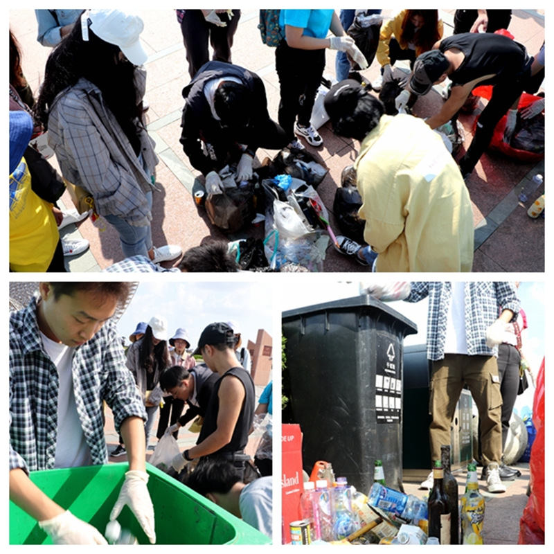 随后,同学们将垃圾进行了统一的分类和投放。他们的行动吸引了不少来此游玩市民的目光,通过此举影响身边人增强环保意识,提高环保自觉性。