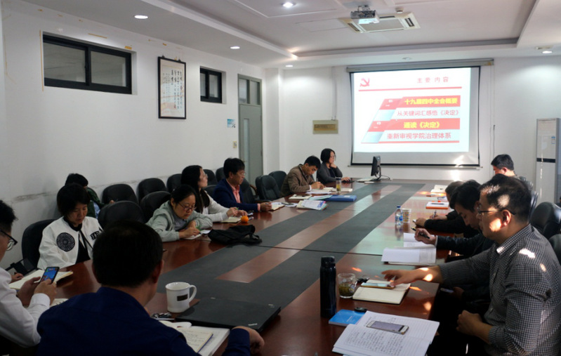 公司党委于11月11日下午组织公司党委中心组扩大学习会,公司党委书记陈慧以“学习贯彻十九届四中全会精神,完善治理体系、 提升治理能力”为题做了辅导学习报告。公司党政领导、师生支部书记20多人参加学习研讨。