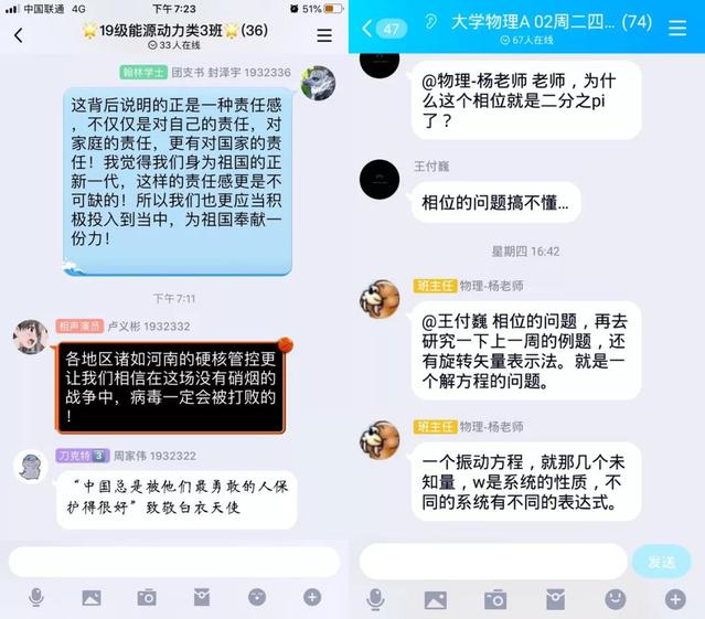 19动力3班的同学们充分运用QQ、微信等软件,除了宣传防疫知识、弘扬抗疫“正能量”外,他们还互相交流学习经验和学习感悟。黎雨晗同学说:“网上上课有很多优点。比如上课内容的听取更加自由。老师讲的重点可以重复观看学习。相比于平时在公司内上课,可以更有目的性地吸收知识。”学习委员许兴安同学就一些课程中的“互评作业”项目发表了他的看法:“评到其他同学近乎满分的作业,不由得会在心里鞭策自己,要向他们看齐。此外,在评语中还可以相互激励,这样的模式让同学们在写作业上也变得额外有动力,大家会主动在课后一起讨论如何把课堂知识学习的更好、如何把作业完成的更好。”