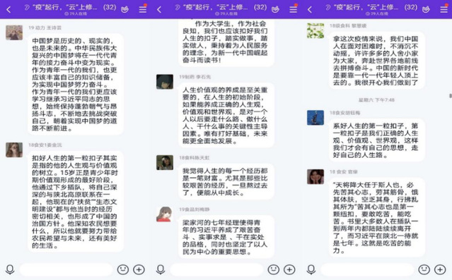 习近平总书记曾经用“扣扣子”比喻价值观的养成,他说,青少年时期的价值取向不仅影响个人成长,更决定了未来社会的价值取向。就像扣扣子,如果第一粒扣子扣错了,剩余的扣子都会扣错。习近平总书记用梁家河的七年,扣好了自己人生的第一粒扣子。沈金灵同学深有体会:“这样一颗扣子,让陕北黄土高原留下深深的足迹,让他了解基层民众,成为了真正脚踏实地融入农村的知识青年,正因为知百姓苦,所以更能为百姓谋幸福。这样一颗扣子让他做到了在7年内让8200多万人脱贫,让他在全球面临新冠肺炎疫情时拯救万民于水火之中,我相信,在习近平总书记的带领下,中国一定会走的更好更远,变得更加强大。作为老员工,作为未来社会主义的建设者和接班人,我们也应该扣好人生的扣子,踏踏实实做事,实实在在做人,秉持着为人民服务的理念,为中国崛起的新时代而努力读书!”.