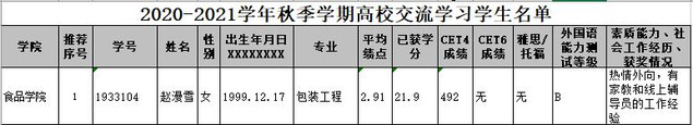 根据教务处文件《关于选派2020-2021学年秋季学期赴台湾海洋大学交流学习的通知》,经个人申请,公司审议,共1位同学申请且符合各项指标,特此公示。公示时间2020年4月24日-2020年4月27日。