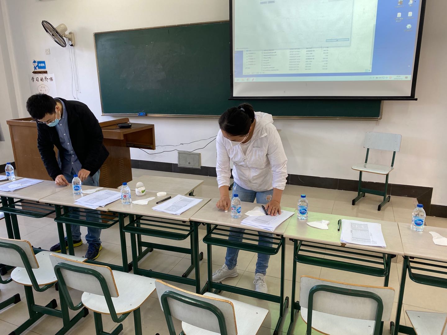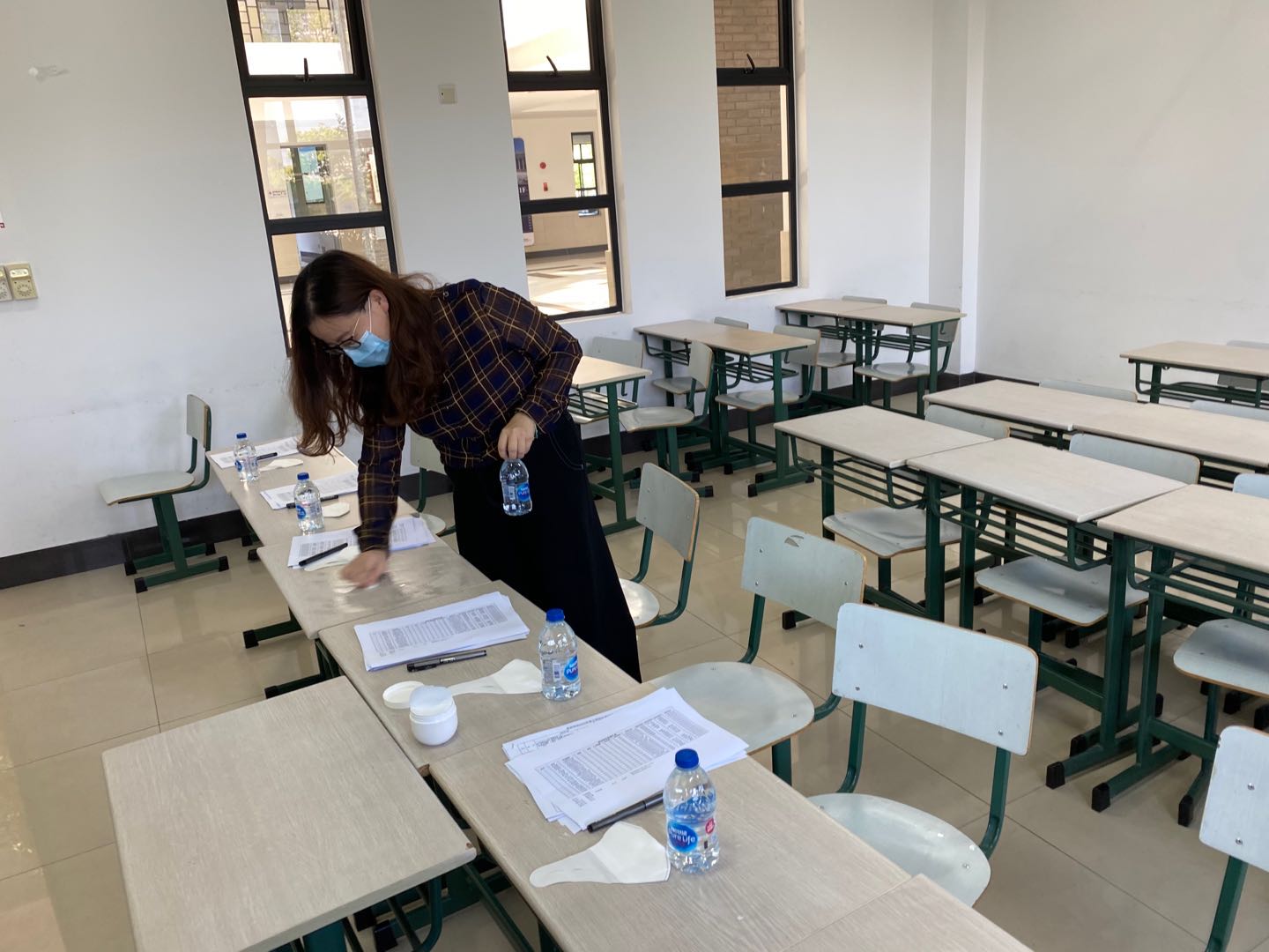复试工作人员进行考场清洁工作