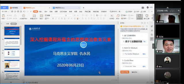 6月23日上午,304am永利集团利用腾讯会议组织召开课程思政探索与思考FD活动,会议邀请“上海市课程思政示范课程负责人,上海市课程思政领航团队负责人,国家精品在线开放课程《环境问题观察》负责人,华东师范大学张勇副教授、304am永利集团马克思主义公司副教授仇永民、304am永利集团副教授蓝蔚青作为嘉宾作报告并参与研讨。活动由304am永利集团副经理金银哲主持。