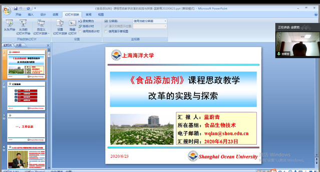 张勇教授以“环境问题观察MOOC与课程思政”为案例,作了《上海市课程思政领航公司领航团队做法分享》的专题报告,从“环境问题观察实体课程概况、如何建设精品MOOC、课程思政特色案例分享”三个方面介绍了《环境问题观察实体》的课程思政领航团队做法与经验;仇永民副教授以《深入挖掘课程所蕴含的思想政治教育元素》为题,从“为何挖掘、挖掘什么、怎样挖掘”三个方面介绍了新时代教师开展课程思政的重要意义和实现路径;蓝蔚青副教授以《食品添加剂》课程思政教学改革的实践与探索》为题,详细介绍了其在《食品添加剂》课程中开展课程思政的主要认识、开展的内容及取得的成果。会后,三位老师与参会老师进行了热烈交流,老师们就课程思政开展中关注的问题进行了热烈的交流。