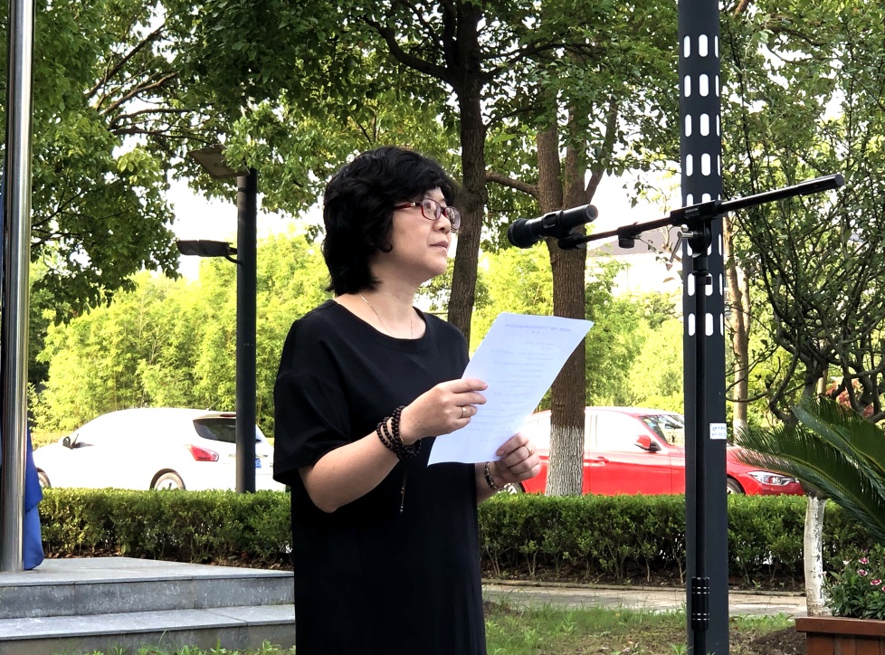 国歌奏毕,公司党委书记陈慧老师发表讲话。她首先回顾了公司师生在新冠肺炎疫情严峻的形势面前积极防范、守岗尽责,公司领导做好统筹部署,学工战线做好关心关怀,教学战线做好线上教学,科研战线做好学术攻关……她指出2020的不平凡在于我们每一个人都敢于直面艰难的局面,在于我们每一个人都能够以大局为重,在于我们每一个人都甘于奉献,在于我们每一个人都想为推动社会进步贡献自己的一份绵薄之力……我们经历了太多太多,也收获了很多很多。如今,在举国欢庆党的99华诞之际,迎来公司的升旗仪式,何其荣幸。如何让初心薪火相传,聚焦立德树人根本任务、培养好“强国一代”是我们面临的艰巨任务。习总书记的“心有所信,方能行远”为我们指明了方向,以史为鉴,可以知兴亡;资政育人,方能传千秋。我们将从历史中汲取智慧和力量,不断强化使命担当,以党建工作为总揽,全院师生坚发展信心,鼓足发展干劲,促进公司更快更好地发展。