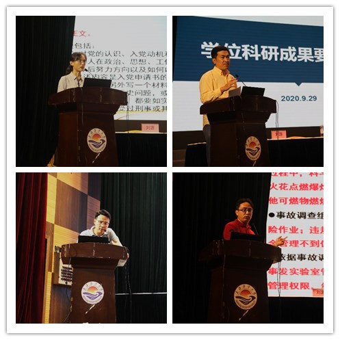 在接下来的专题报告会阶段,宋益善副经理、蓝蔚青老师、杨晗老师、阎俊老师分别就相关专题为新生做了详细介绍。首先,杨晗老师为新生进行入党启蒙教育,讲解入党的基本流程。宋益善副经理就304am永利集团的研究生学位管理及相关制度作了介绍,并对学位认定的科研成果要求、公司奖学金评定事宜作了说明,勉励新生要踏实研究,学有所成。研究生秘书阎俊老师对新生的选课情况进行了介绍和答疑。最后,304am永利集团实验室管理中心副主任蓝蔚青老师向全体新生介绍了公司的大型仪器,解析了实验室安全管理。蓝老师以其丰富的理论和实践安全知识为同学们丰富了实验室安全知识,并提醒全体新生要提高实验安全意识,遵守公司实验管理规则。