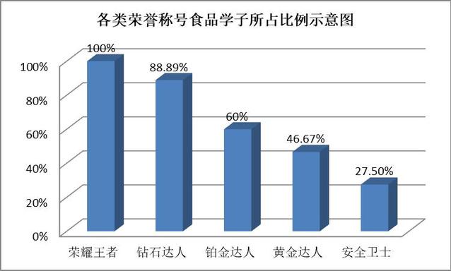 食品学子在本次竞赛中取得骄人的成绩,由杨兰珠同学摘得桂冠、荣获“荣耀王者”,8人获得“钻石达人”荣誉称号、12人获得“铂金达人”荣誉称号、14人获得“黄金达人”荣誉称号、11人获得“安全卫士”荣誉称号,占总获奖人数的46%。