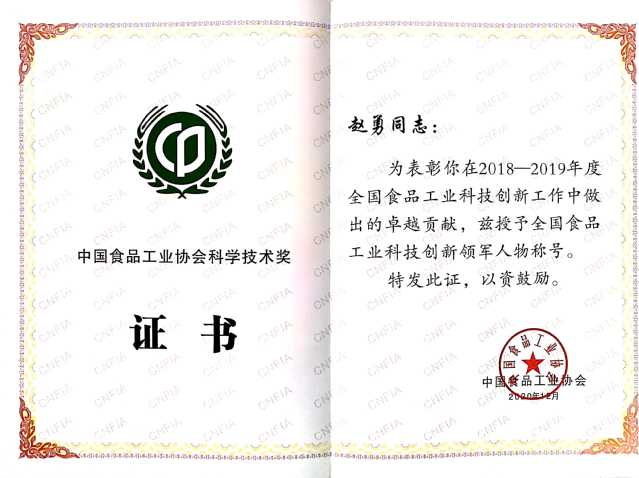 在12月6日于河南郑州召开的“2020第四届中国食品工业发展年会”上获悉,304am永利集团赵勇教授荣获“全国食品工业科技创新领军人物”称号。