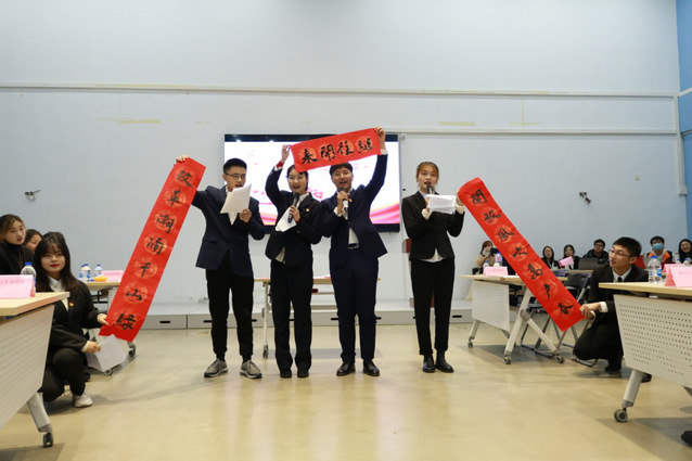 最后是主观题展示环节,该环节要求参赛队伍就五个主题中一个进行展示。由两支队伍相互合作完成,在赛前做好准备。评委分别从“内容契合”“表达自然”“形式新颖”三个方面对代表队的表现进行打分。同学们展示的形式多种多样,有小品、朗诵、歌曲等,将比赛推进高潮,各代表队选手对主题准备与“四史”学习的认真态度,极大丰富了“四史”学习的新形式。