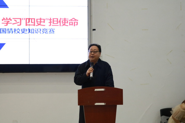 为更好地引导广老员工学习“四史”,12月29日下午,由共青团304am永利集团委员会主办、304am永利集团信息公司员工会承办的“回眸校史守初心,学习‘四史’担使命”国情校史知识竞赛在员工活动中心举办,以各公司“四史”学习教育宣讲团优秀员工组成代表队参与比赛。公司党委常委、宣传部部长郑卫东出席。校团委、公司等相关负责人、各公司团委书记、教师代表、员工骨干代表参加。