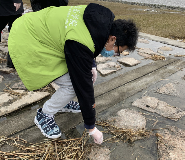 这是同学们第一次来到临港新城著名的风景胜地——东海。阵阵的海风和空旷的东海带来了一丝凉意,东海沿岸的垃圾并不算很多,大多都是一些游客所遗留下的食品包装、果皮瓜壳和烟蒂等,志愿者们立刻进行任务分配,开始垃圾收集和分类的工作。虽春寒料峭,但同学们似火的工作热情丝毫没有减少。经过一个多小时的努力,垃圾的清理工作就基本完成了,相较于上一次的清滩活动来说,垃圾量明显减少,可以看出当下人们的环保意识已经增强了许多。