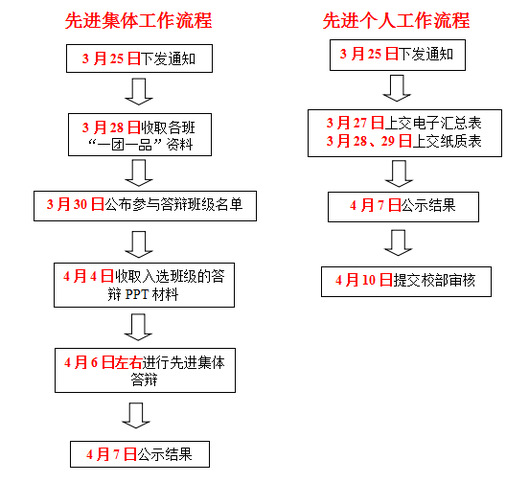 今年参与红旗团组织评选并获得荣誉的班级,班内员工可获得下一学期先进个人评选加分,每人各3分;若成功评选为特色团组织,则班内员工每人加5分。请各班积极报名参与。