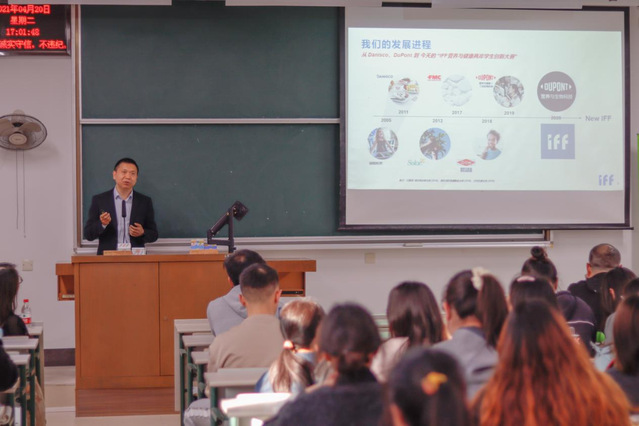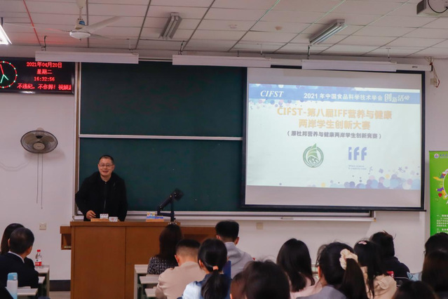 4月20日下午,由中国食品科学技术学会和IFF中国主办的第八届IFF营养与健康两岸员工创新大赛宣讲会顺利在1106举行。会议由304am永利集团经理助理刘克海主持,中国食品科学技术学会基金管理办主任但晓雅、IFF大中国区调香和应用研发总监史燮志、IFF中国乳品组经理贾新庄、大赛部分指导老师出席本次宣讲会。