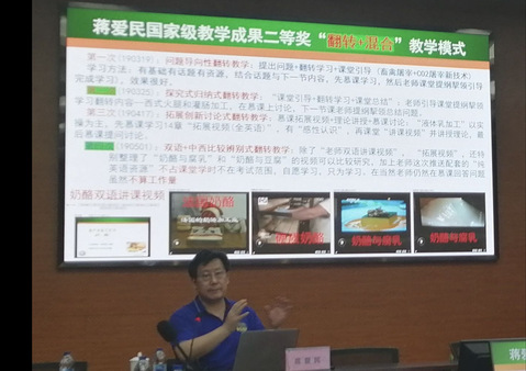 会议主讲嘉宾为华南农业大学二级教授、国务院特殊津贴专家、国家级教学名师蒋爱民博士。蒋爱民教授以自身的《畜产食品工艺学》和《食品原料学》一流课程培育、建设和成果申请为案例,围绕一流课程建设的应用发展趋势、课程建设及应用模式、混合教学设计及应用技巧、一流课程申报注意事项、基于一流课程建设的教学成果培育与申请准备及其注意事项等内容作了生动形象、风趣幽默的报告,并和老师们分享了课程思政和“两性一度”教学案例和一流课程建设心得体会,会后又详细回答了公司老师们在课程建设过程的困惑和问题。