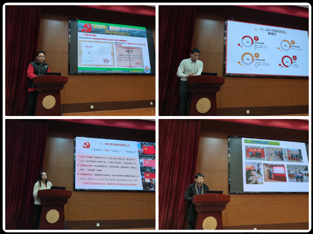 2021年度公司党支部书记采用书面和现场汇报两种方式进行。退休党支部以书面报告方式述职,其他18个党支部通过提交书面述职报告和现场汇报方式述职。各党支部书记从党员教育管理、发展党员工作、党史学习教育开展情况、新闻宣传、党建与业务融合情况、党建引领作用发挥、支部亮点工作等七个方面对2021年支部工作进行了全面总结。