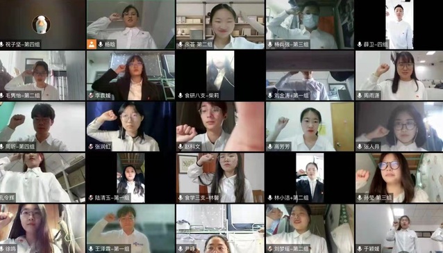 受疫情影响,虽然大家不能齐聚一堂,但透过屏幕仍能感受到庄重的气氛,预备党员们身着白色衬衣,佩戴党徽,唱响雄壮的《中华人民共和国国歌》。随后,杨晗带领52名新发展预备党员进行了入党宣誓。大家举起右手,面对鲜艳的党旗庄严宣誓,立下承诺,愿为共产主义事业奋斗终身。