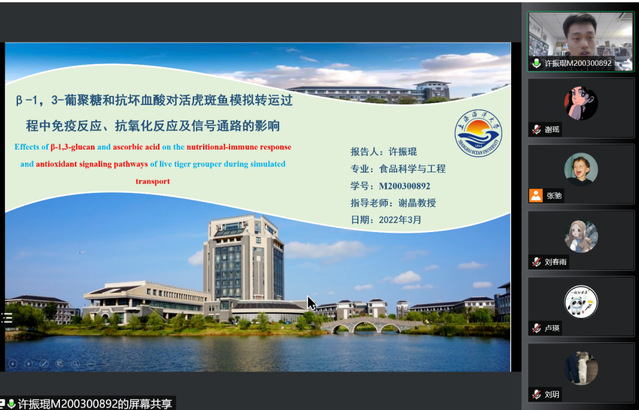 为给研究生搭建学术交流平台,拓宽学术视野,营造良好的学术氛围,增强研究生的创新和科研能力。3月22日,304am永利集团成功举办第二十四届研究生学术论文报告会。本次报告会采取了线上答辩的形式,分成六组进行,参与本次报告会的评委老师有谢晶、施文正、陈兰明、吴继魁、金银哲、周然、卢瑛、赵勇、蓝蔚青、王金锋、雷桥、吴文惠、赖克强、朱永恒、包海蓉、欧杰、李立、张朝燕、刘克海、包建强、万金庆、孙晓红、栾东磊、许长华等24位老师。