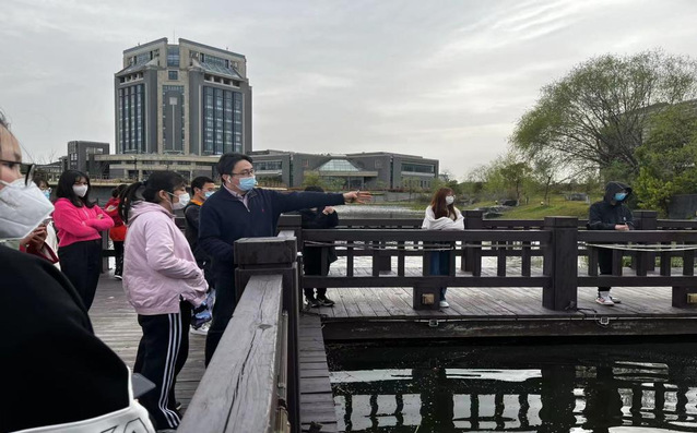 在教学方面,蓝蔚青也带领同学们欣赏校园里的景色。春意盎然,他劝勉同学们无论何时都要保持坚韧不拔的优良品质和积极乐观的处事态度,大家只要心手相牵,共克时艰,定能迎来抗疫的胜利。