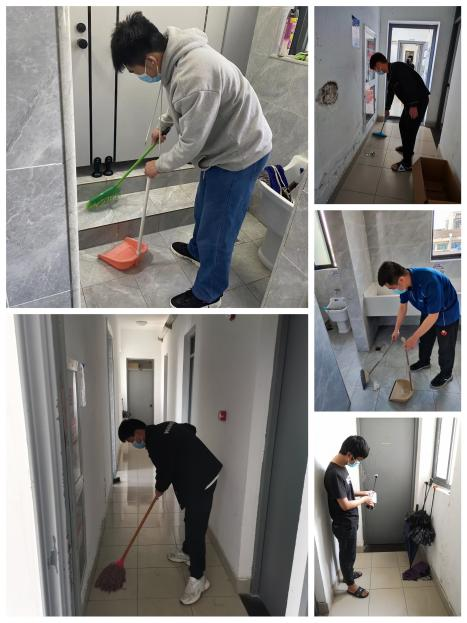 当天下午,各门厅党员们做好防护后开始打扫寝室卫生,逐一对寝室楼道和公共卫生区域进行消毒、拖地、打扫,大家认真对待宿舍的卫生打扫,将垃圾进行干湿分离以外,还将积攒的纸盒、塑料瓶整理分拣。他们希望通过自己的努力,一方面为身边的同学们提供干净卫生的生活环境,另一方面引领更多同学加入爱卫行动共筑阻击疫情的防线。