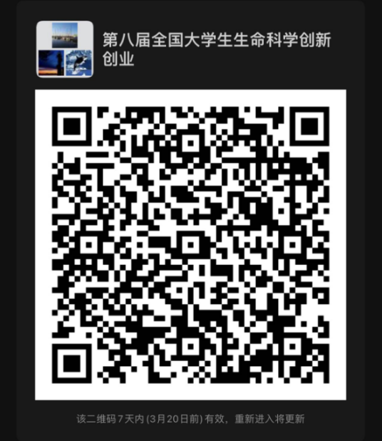 请各参赛项目指导教师与负责同学加入“第八届全国老员工生命科学创新创业”微信群,2023年3月20日前扫码进入有效)