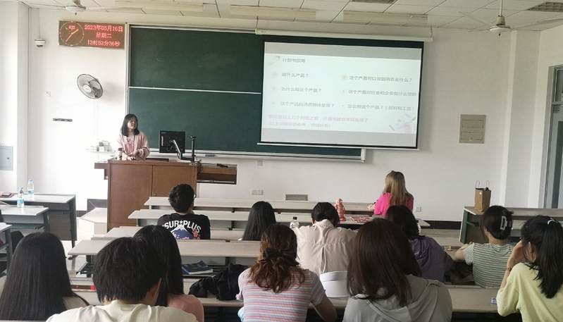 然后,殷海洋总经理为了让同学们更好的参赛,介绍了IFF部门简介、产品介绍、产品设计要素及食品安全简介以及利用IFF产品技术完成三大主题创新,并特别强调了产品的保质期。