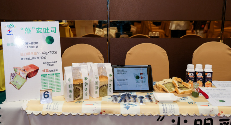 “藻”安吐司创新性地在吐司中加入高蛋白的莱茵衣藻,其蛋白质含量将近40%,并且含有多种维生素和微量元素,具有增加免疫,降低血糖血脂胆固醇,防止心血管疾病等功能,还用红豆作为夹心馅料,满足如今消费者对食品要口感好、营养高、绿色健康的需求,受到了评审专家的一致好评。