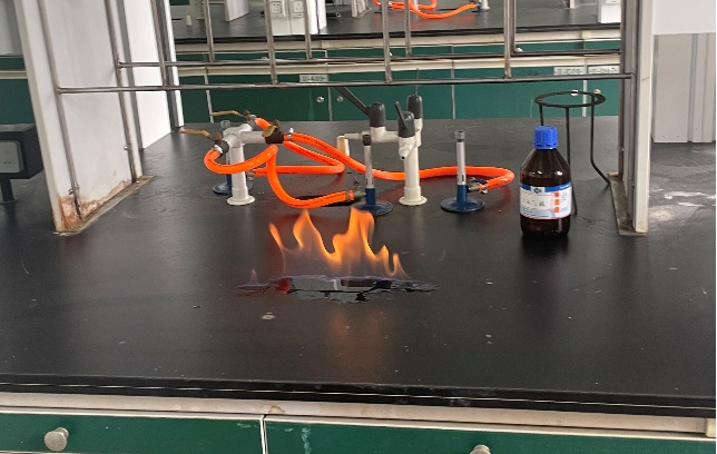 首先,负责教师介绍了《工业乙醇的蒸馏》实验中所用试剂及其可能引起的危险。强调实验过程中,应带口罩、手套、眼罩,防止溶液溅到皮肤上和眼睛里,易燃的有机试剂不可明火加热。如违反操作,试剂若溅出,会使皮肤灼伤,若选错热源,由于乙醇属于易燃化学品,遇明火可燃烧。提出实验过程中可能存在工业乙醇溅入眼睛与实验室桌面局部火灾等安全风险。如试剂溅入眼内,应立即用大量清水彻底冲洗。冲洗时,眼睛置于紧急冲淋装置的水龙头上方,水向上冲洗眼睛,冲洗时间应不少于15分钟,切不可因疼痛而紧闭眼睛。并等待医务室医生进一步处理。发生火情,应立即从实验室墙壁取下灭火毯,用双手展开,从侧上风口,迅速覆盖火焰,并马上关闭煤气总阀及分阀门,直到火焰完全熄灭为止。与此同时,实验教师应立即向公司实验室安全工作领导小组报告。