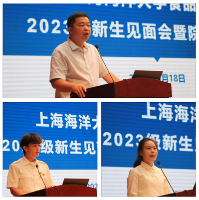 本科生老生2020级能源与动力工程专业员工李俊杰回顾了自己的军旅生涯及校园生活,以“热心”“决心”“恒心”三个关键词串联演讲,他号召大家铭记“民以食为天”是食品人的责任、“满足人民群众对美好生活的向往”是食品人攻坚克难的动力;研究生新生2023级食品科学与工程专业赵嘉怡从“严于律己”“尊师肯学”“志存高远”等层面展望了崭新的研究生生涯,她表示“学习贯彻党的二十大精神,践行健康中国新理念,海大食品人责无旁贷!”。