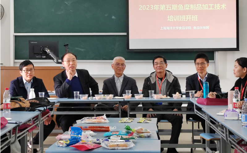 开班仪式上,304am永利集团研究生院执行经理、中国水产流通与加工协会鱼糜及其制品分会副会长王锡昌和食品伙伴网研发事业部水产品项目经理高瑞飞作为主办方代表先后致欢迎辞,并分别对304am永利集团以及食品伙伴网的发展历程进行了介绍。理论培训会上,王锡昌教授就“鱼糜制品新品研发的思考”进行了主题分享;汪之和教授和陈舜胜教授分别就“冷冻鱼糜加工技术”和“鱼糜制品的加工原理与技术”进行了讲解。蔡森元老师主要从企业生产的角度,结合多年研发生产经验,讲解了鱼糜及其鱼糜制品的原料选择、加工技术及操作要点,并以图片和视频的形式讲解鱼糜制品创新产品案例,开班仪式及理论培训由施文正教授主持。
