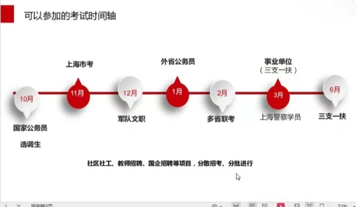 第一期公考形势与心态调试交流会于3月25日18:00-19:30进行,著名公考机构的资深专家周倩倩老师,就公务员备考进行了分享。周老师为大家详细列出了上海公考的时间轴,并指出三点成功上岸的关键:明确定位和方向;拒绝无效刷题;抓住机会不放弃。