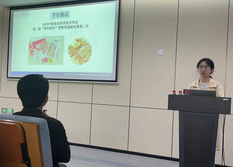 最后,公司去年获得二等奖的代表张人月同学给大家分享了她们的作品“芋你蟹逅”的参赛经验,她从最初的创意来源、计划书撰写到后期的产品制作等方面分享了自己的想法与建议。