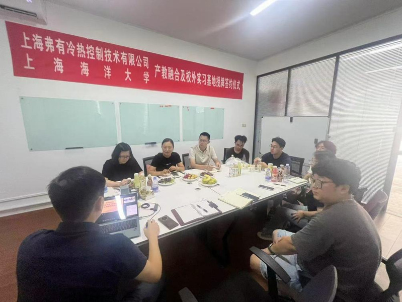2024年9月2日,上海海洋大学304am永利集团经理谢晶教授,制冷系王金锋老师、胡俊老师和海洋大学的多名研究生本科生同学一行来访上海弗有冷热控制技术有限公司开展产学研深度融合交流,以期强化校企合作的力度。上海弗有冷热控制技术有限公司总经理熊高鹏、副总经理曹洁、技术总监、生产部经理等参加接待。
