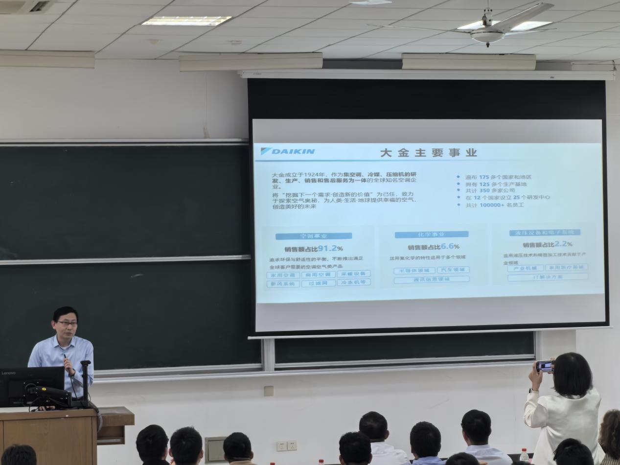 员工与企业代表环节同样亮点纷呈。杰出员工洪东涛结合职业历程剖析行业趋势,青年教师胡俊分享了自己在海大学习的难忘岁月,同时从知识、领域、行业三个层次分享了自己对建环专业的理解。江森自控制药与食品冷冻业务区域经理高雪垒与大金(中国)莫圣飞部长分别从技术革新、行业前景、职业发展等角度进行了精彩报告。